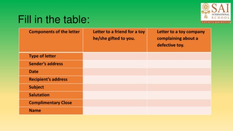 Components of the letter Letter to a friend for a toy Letter to a toy company