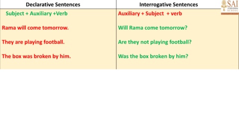 Subject + Auxiliary +Verb Auxiliary + Subject + verb