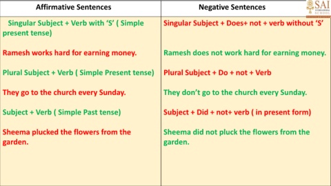 Singular Subject + Verb with ‘S’ ( Simple Singular Subject + Does+ not + verb without ‘S’