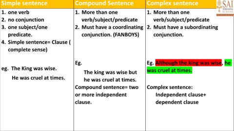 3. one subject/one 2. Must have a coordinating 2. Must have a subordinating
