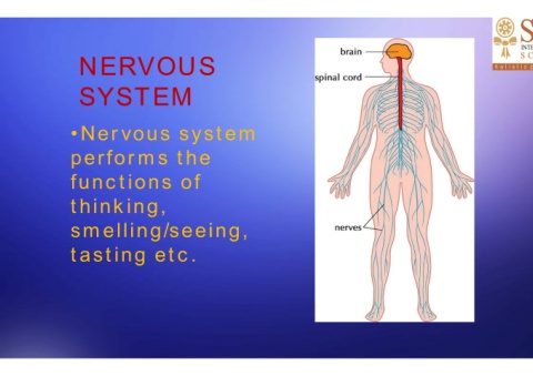 NERVOUS SYSTEM •Nervous system performs the functions of thinking, smelling/seeing, tasting etc.