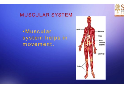 A R U L STEM SY MUSCULAR SYSTEM M SC U •Muscular system helps in s y s t em helps in movement.
