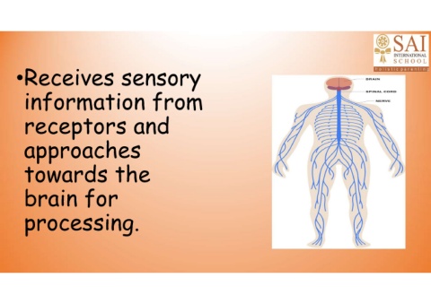 •Receives sensory information from receptors and approaches towards the brain for processing.