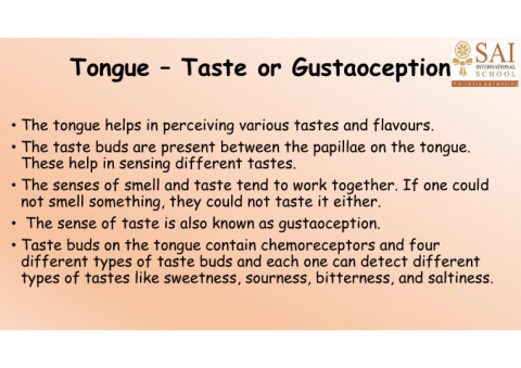 types of tastes like sweetness, sourness, bitterness, and saltiness.