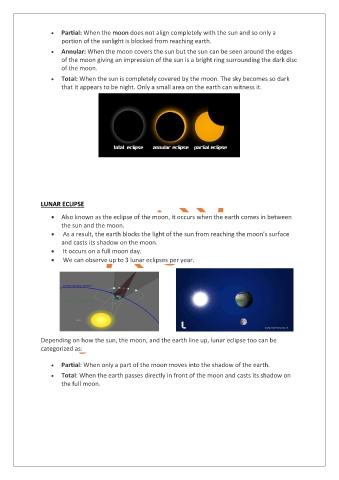 Partial: When only a part of the moon moves into the shadow of the earth.