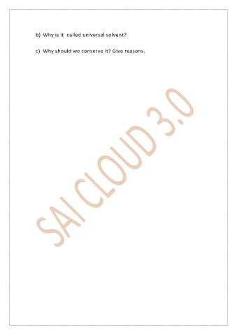 b) Why is it called universal solvent? c) Why should we conserve it? Give reasons.