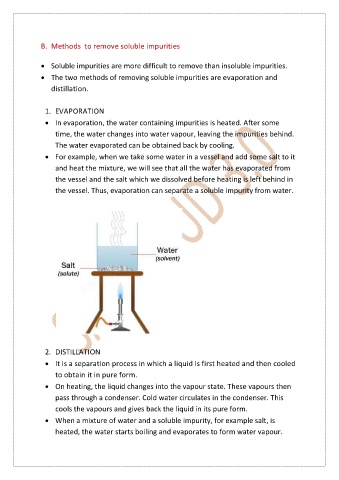 the vessel. Thus, evaporation can separate a soluble impurity from water.