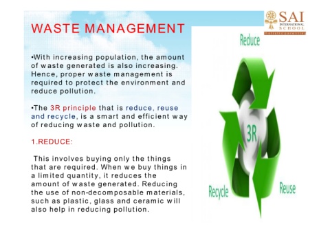 •The 3R principle that is reduce, reuse
