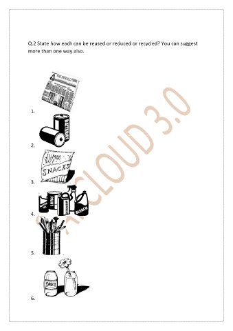 Q.2 State how each can be reused or reduced or recycled? You can suggest more than one way also. 1. 2. 3. 4. 5. 6.