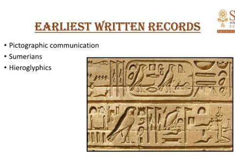 EARLIEST WRITTEN RECORDS E A R L I E S T W R I T T E N R E C O R D S • Pictographic communication • Sumerians • Hieroglyphics