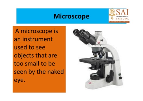 Microscope A microscope is an instrument o t e s e used to see u s d e objects that are too small to be seen by the naked eye.