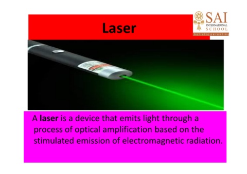 Laser A laser is a device that emits light through a process of optical amplification based on the stimulated emission of electromagnetic radiation.