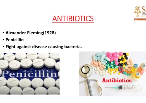 ANTIBIOTICS A N T I B I O T I C S • Alexander Fleming(1928) • Penicillin u n i s e a c g r e i . a b a t c t a a g F • Fight against disease causing bacteria. i h g i s i e s a s n t d