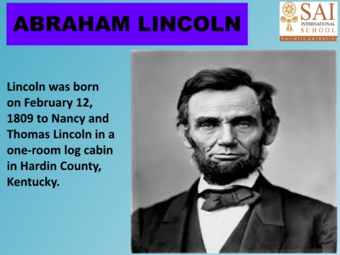 ABRAHAM LINCOLN Lincoln was born on February 12, 1809 to Nancy and Thomas Lincoln in a one-room log cabin in Hardin County, Kentucky.
