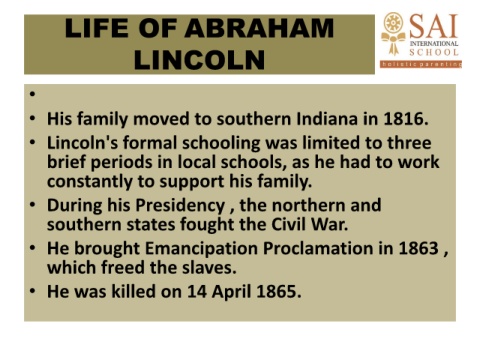 • Lincoln's formal schooling was limited to three