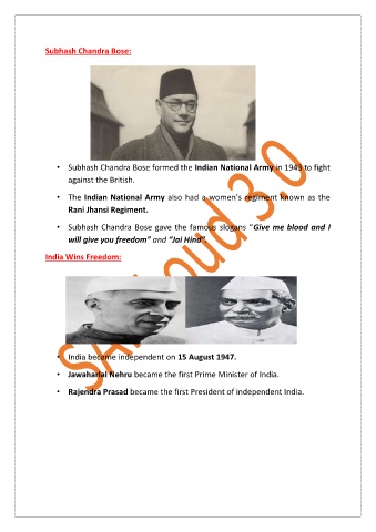 • Subhash Chandra Bose formed the Indian National Army in 1943 to fight