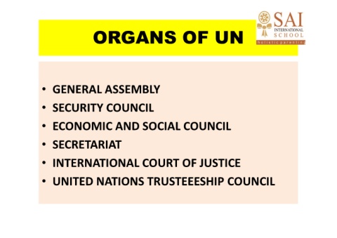 ORGANS OF UN • GENERAL ASSEMBLY • SECURITY COUNCIL C A I D O S L C N L I C U O O N O • ECONOMIC AND SOCIAL COUNCIL E C A N M I C • • SECRETARIAT • INTERNATIONAL COURT OF JUSTICE • UNITED NATIONS TRUSTEEESHIP COUNCIL