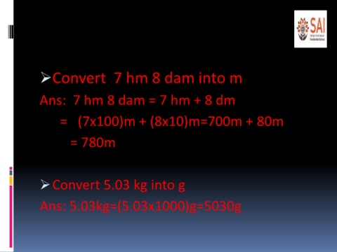 Ans:  7 hm 8 dam = 7 hm + 8 dm