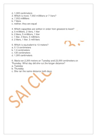6. Maria ran 2,300 meters on Tuesday and 23,000 centimeters on