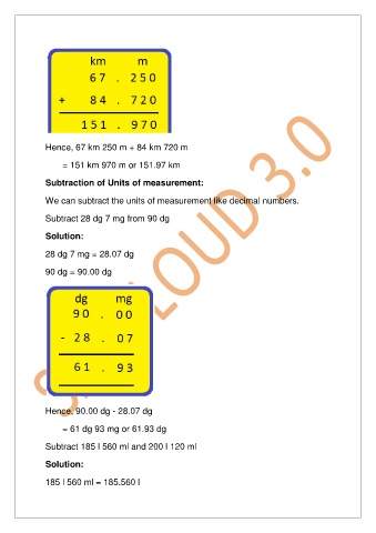Subtraction of Units of measurement: