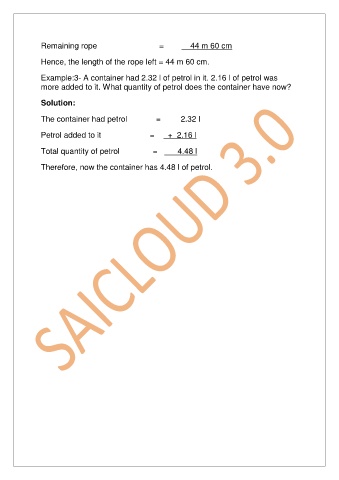 Example:3- A container had 2.32 l of petrol in it. 2.16 l of petrol was