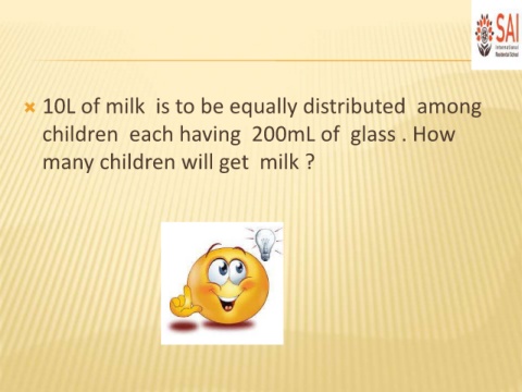 10L of milk is to be equally distributed among children each having 200mL of glass . How many children will get milk ?