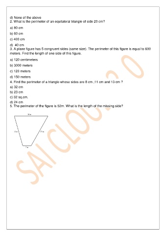 2. What is the perimeter of an equilateral triangle of side 20 cm?