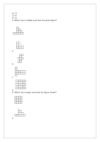b) 13 c) 14 d) 15 4. Which has a smaller area than the given figure? a. b. c. d. 5. Which has a larger area than the figure shown? a.