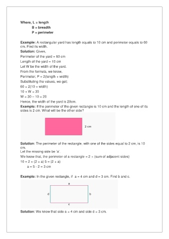 Example: A rectangular yard has length equals to 10 cm and perimeter equals to 60