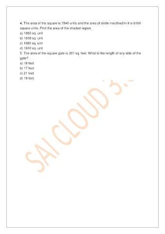 4. The area of the square is 7840 units and the area of circle inscribed in it is 6160