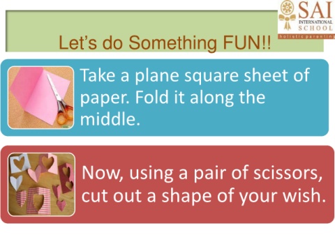 Let’s do Something FUN!! Take a plane square sheet of paper. Fold it along the middle. Now, using a pair of scissors, cut out a shape of your wish.