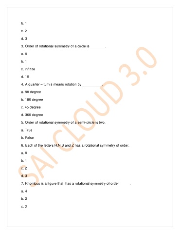 7. Rhombus is a figure that has a rotational symmetry of order _____.