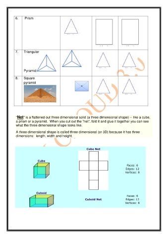 “Net" is a flattened out three dimensional solid (a three dimensional shape) -- like a cube,