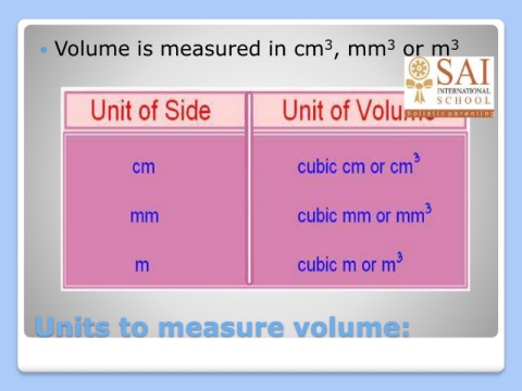 Volume is measured in cm , mm or m 3 3 3 Units to measure volume: