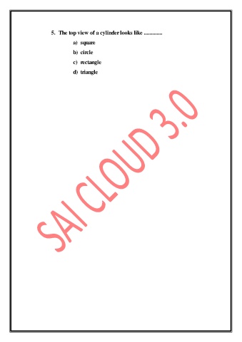 5. The top view of a cylinder looks like ............. a) square b) circle c) rectangle d) triangle
