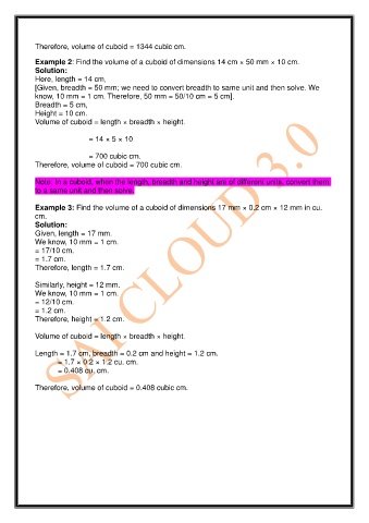 Example 3: Find the volume of a cuboid of dimensions 17 mm × 0.2 cm × 12 mm in cu.
