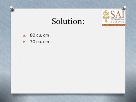 Solution: a. 80 cu. cm b. 70 cu. cm