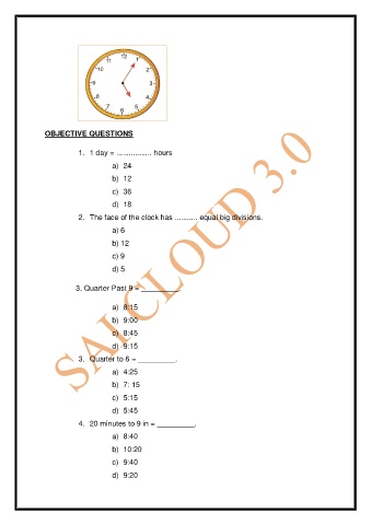 3. Quarter Past 9 = _________.