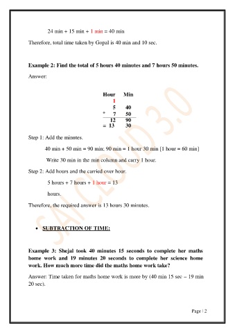 Example 3: Shejal took 40 minutes 15 seconds to complete her maths