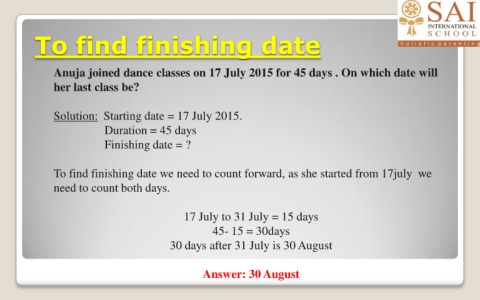 Anuja joined dance classes on 17 July 2015 for 45 days . On which date will