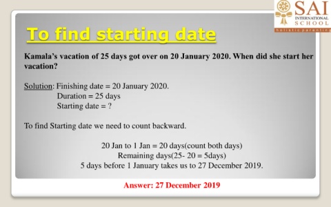 Kamala’s vacation of 25 days got over on 20 January 2020. When did she start her