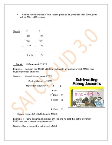 And we have borrowed 1 from rupees place so 1rupees less than 500 rupees