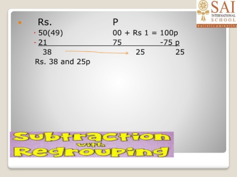 Rs. P 50(49) 00 + Rs 1 = 100p - 21 75 -75 p 38 25 25 Rs. 38 and 25p