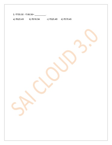 5. ₹705.50 - ₹ 88.56= _________. a) ₹625.49 b) ₹616.94 c) ₹525.49 d) ₹578.45