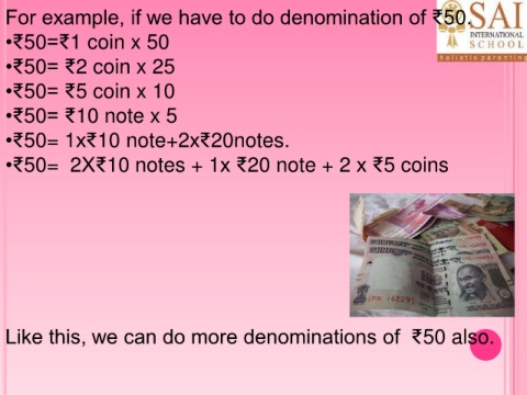 •₹50= 2X₹10 notes + 1x ₹20 note + 2 x ₹5 coins