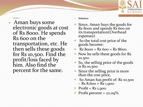 for Rs 10,500. Find the Now he sells these goods for Rs
