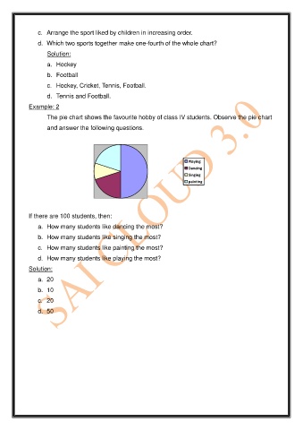 The pie chart shows the favourite hobby of class IV students. Observe the pie chart