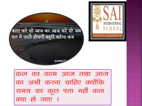 dy dk dke vkt rFkk vkt dk vHkh djuk pkfg, D;ksafd le; dk dqN irk ugha dy D;k gks tk, A