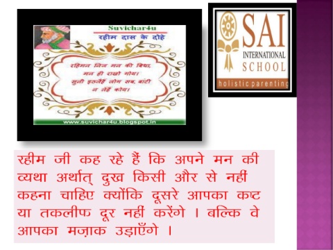 jghe th dg jgs gSa fd vius eu dh O;Fkk vFkkZr~ nq[k fdlh vkSj ls ugha dguk pkfg, D;ksafd nwljs vkidk d”V ;k rdyhQ nwj ugha djsaxs A cfYd os vkidk et+kd mM+k,¡xs A