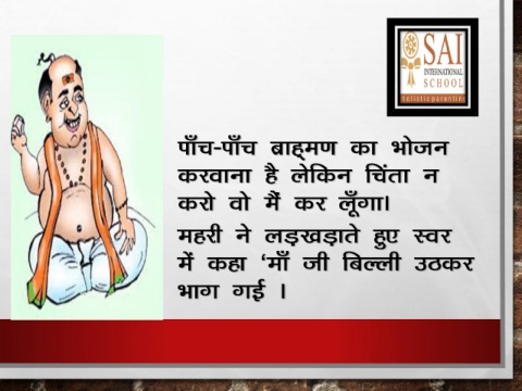 Ikk¡p&Ikk¡p czkg~e.k dk Hkkstu djokuk gS ysfdu fpark u djks oks eSa dj yw¡xkA egjh us yM+[kM+krs gq, Loj esa dgk ^ek¡ th fcYyh mBdj Hkkx xbZ A